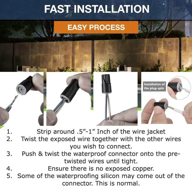EASY TO INSALL: The connector can be applied to connect wires without soldering. No electrical tape or tools are required. Just slightly pre-twist wires and gently twist on connector until tight.