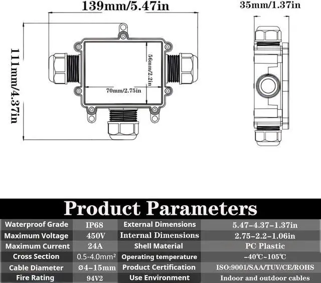 Package List: 1 * IP68 Waterproof Junction Box Cable Connector