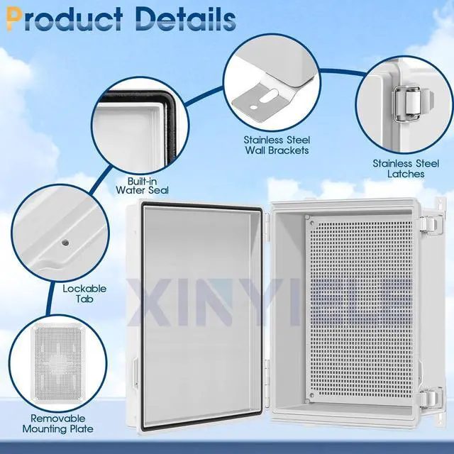 Convenient AccessibilityOur project boxes feature a hinged cover, providing easy access for maintenance and operation. The stainless steel latches ensure a secure and watertight seal, safeguarding your electrical connections from water, dust, and other elements. It offers reliable protection for both indoor and outdoor installations.