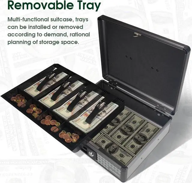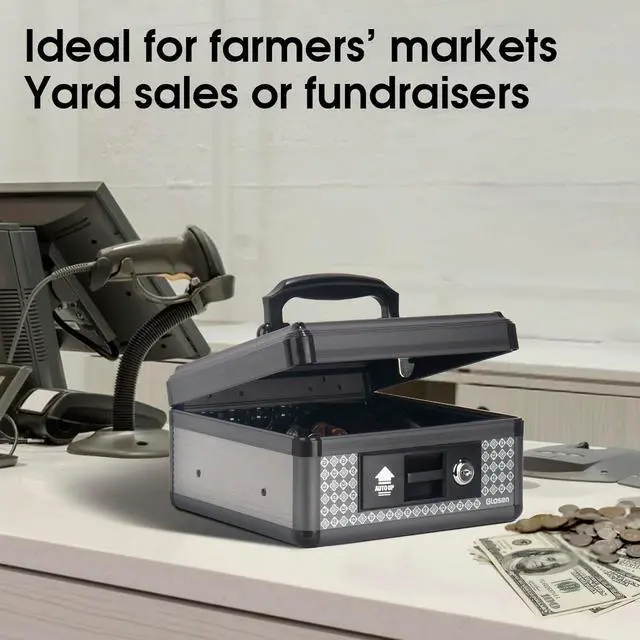 MONEY BOX: Perfectly suited for schools, supermarkets, lockers, cabinets, homes, yard sales and more. Ideal for storing bills, coins, checks and receipts.