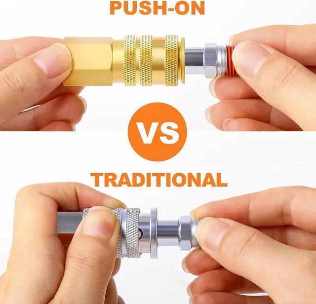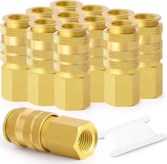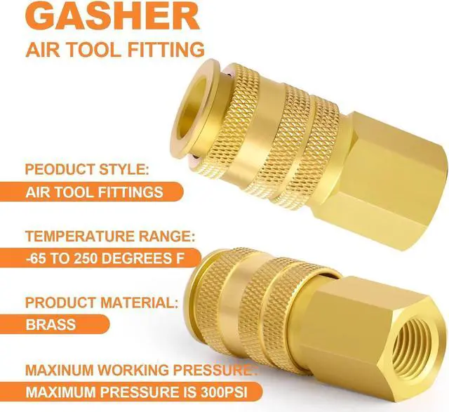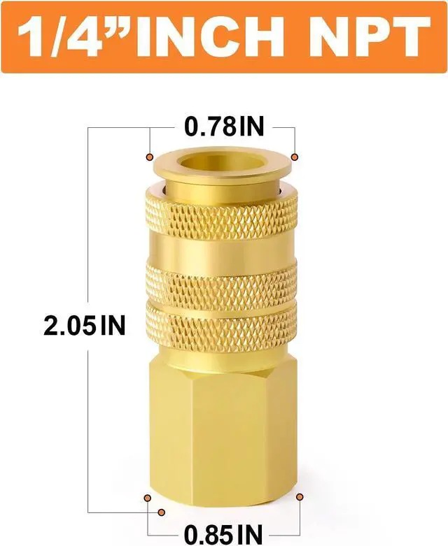 1/4"NPT Industrial Solid Brass Quick Connect Set helps you switch quickly between different air tools and accessories. It is ideal for any shop or garage to quickly and safely disconnect air hoses. (NPT thread size is not the actual diameter, it is only the nominal pipe size)