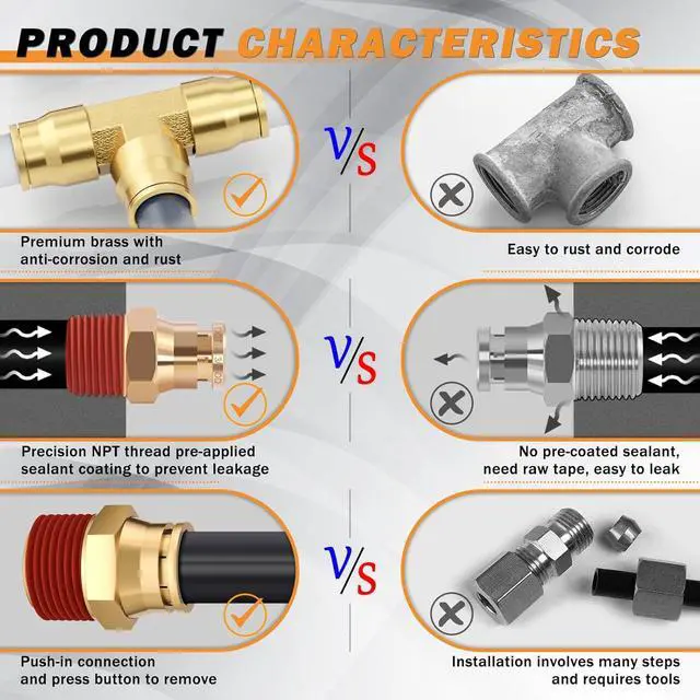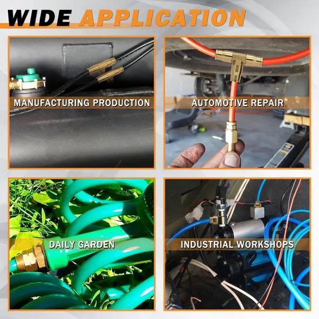 TYPICAL APPLICATION - The dot air brake line fittings can be used with air suspension systems, copper tubing in air lines brake systems, perfect for truck /RV repair air line leak, also perfect for industrial workshops, daily garden or lawn mower repair, towing machine hose connection and so on