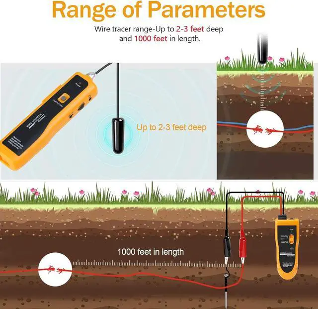 Range of ParametersWire tr range-Up to 2-3 feet deep and 1000 feet in length.