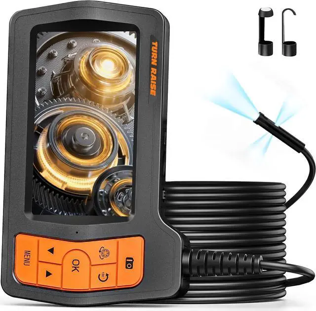 Semi-Rigid Cable & IP67 Probe: 16.5 ft semi-rigid cable offering both strength and flexibility. IP67 probe with 8+2 adjustable LED light beads, which can adjust the 5 brightness according to the button, allowing you to see clearly in low-light conditions without glare or shadow. The DIY bundle with fishing tape helps extend the cable of flexible snake camera to inspect drain pipes, automotive engines, wall structures, and HVAC duct work