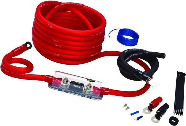 This Stinger 4000 Series 1/0-Gauge Power Wiring Kit is designed specifically for car audio systems up to 3, 400 watts or 250 amps. It is a power only kit. It includes everything you need for installation including power wire, ground wire, remote turn-on wire, fuse holder, fuse, ring terminals and mounting hardware.