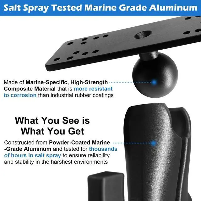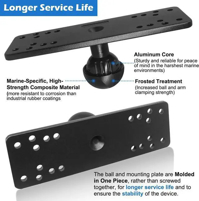 Heavy Duty - The weight capacity of the marine electronic mount can be up to 15.5 lbs at rest and 4.5 lbs at motion. Able to hold screens from 5" to 9" securely (available over 10", but fish finder is too heavy not recommended)