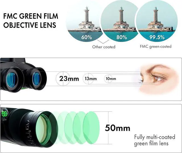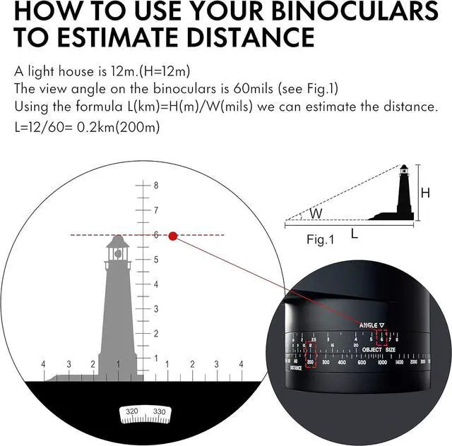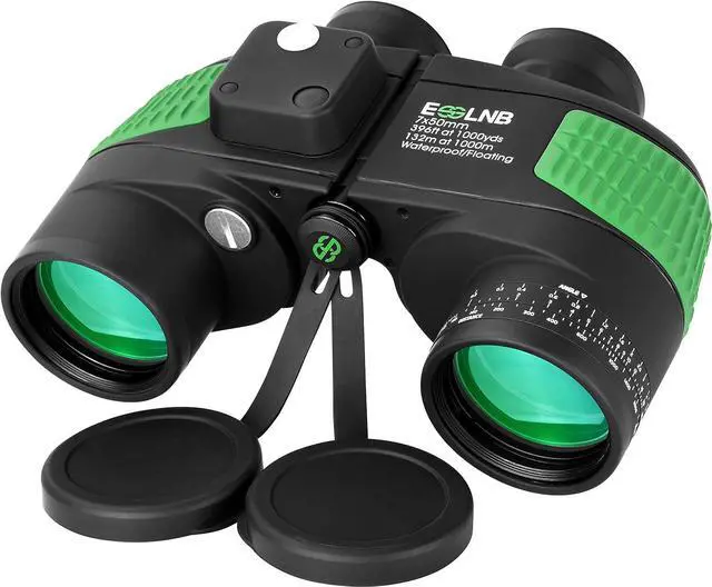 7x50 Binoculars with Bag and Floating Strap: It is easy to carry. Loss-proof object lens covers can directly hange on rangefinder binoculars body to prevent missing, which also protect lenses and eyepieces. 2pcs batteries are included. This compact binoculars for adults is suitable for navigation, hunting, bird watching and other outdoor activities.