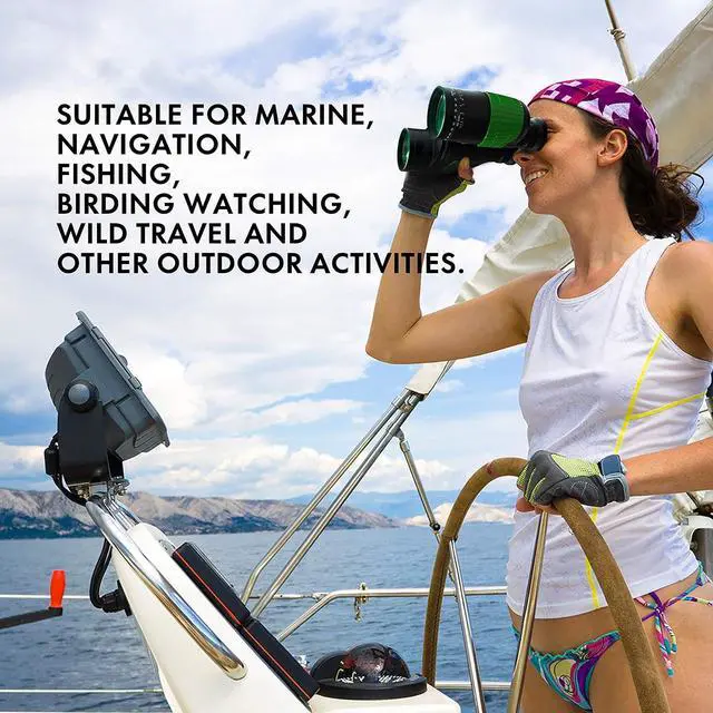 IPX7 Waterproof Binoculars: Dry nitrogen filled and O-ring sealed for waterproof protection to prevent dust-proof, fogging and moisture damage in all weather conditions. So this navigation binoculars is suitable for outdoor use. Under 1 meter depth, 100% waterproof and float in water for 30 minutes. So no worries if dropped into the ocean.