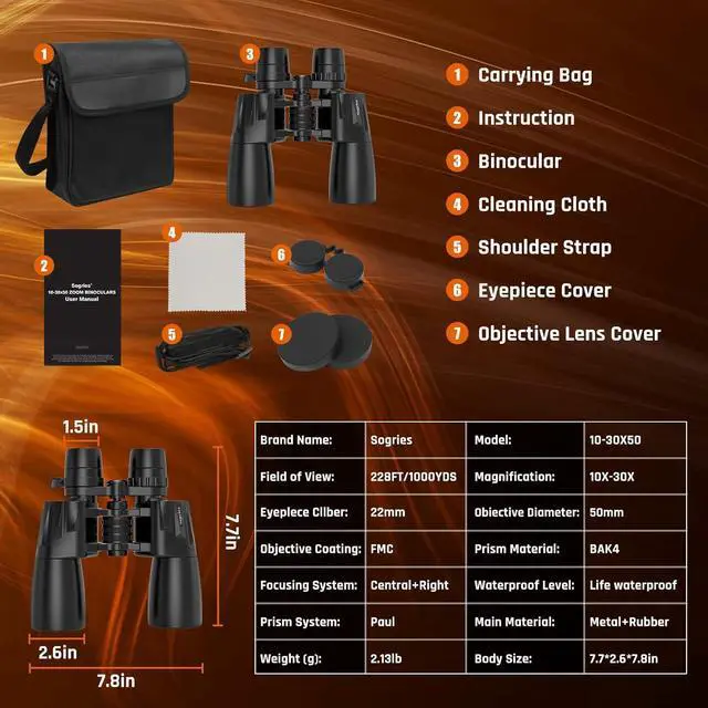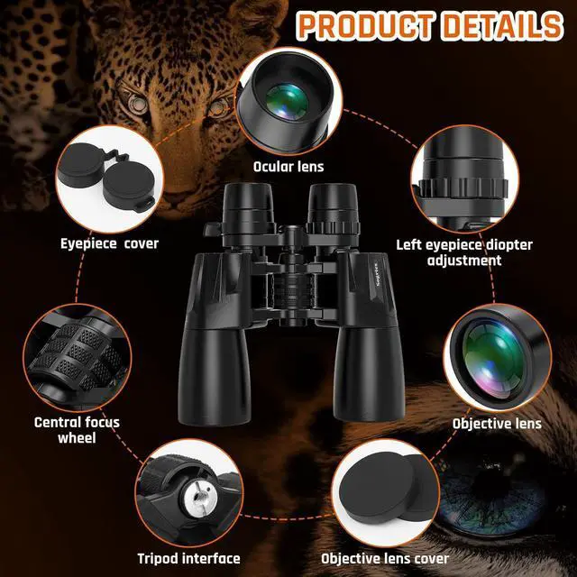 Waterproof & Comfortable Grip--Our powerful zoom binoculars have an unscented rubber armour coating, a non-slip fingerprint construction, and a safe and comfortable grip surface. O-ring sealed lenses with anti-fog coating keep moisture, dust, and other debris out of the binoculars' interior, making them waterproof, shock-resistant, long-lasting, and easy to hold.
