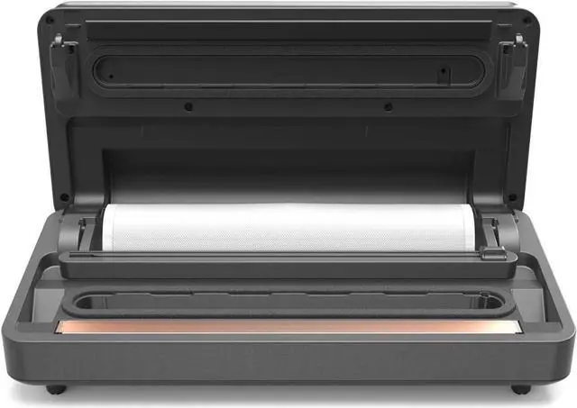 SECRET STORAGE: Hinge your vac sealer open to see that it conveniently houses a full roll of bags (Included for free! ) and a simple sliding bag cutter. Flip the sealer over to reveal integrated cord storage hidden in the bottom of the unit.