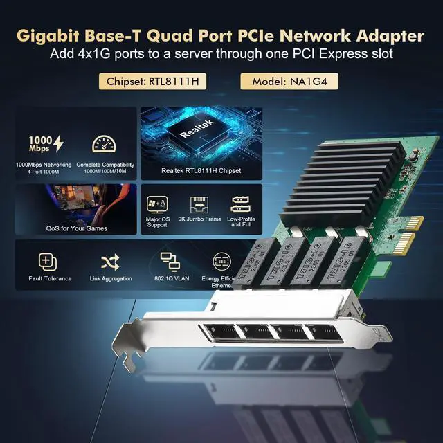 Network FeatureSupport Auto MDIX, IEEE 802.1Q VLAN tagging, Full Duplex flow control(IEEE 802.3 x), 9Kbytes Jumbo frame, 2.5G bps PCI Express Bus