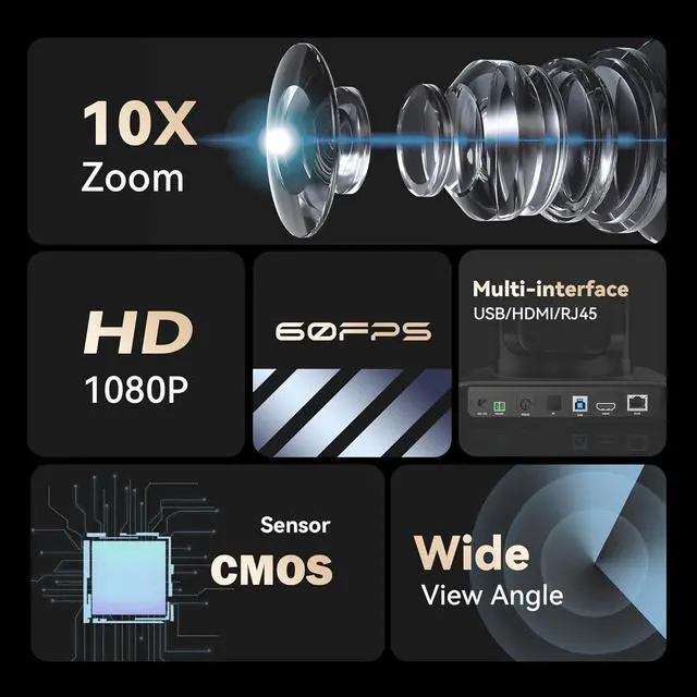 Plug and play, No additional drivers required. Launch video meetings with a plug-and-play USB connection to your laptop, desktop, computer, or Smart TV, and then you can start it immediately and run it on the video conferencing software. Built-in OSD menu, you can easily adjust the picture until it is what you want. Anyone can easily set up this HDMI/RJ45/USB optical zoom camera and control video conferencing or live streaming.
