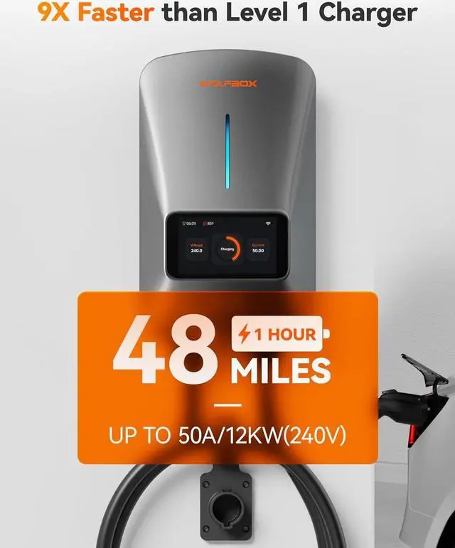 Universal Compatibility & Installation Recommended: The wall-mounted EV charger is compatible with all J1772 electric vehicle models. For optimal performance and safety, we recommend installing the level 2 ev charger 50 Amp on a circuit breaker rated at 70A or greater. Please consult a professional electrician for installation.