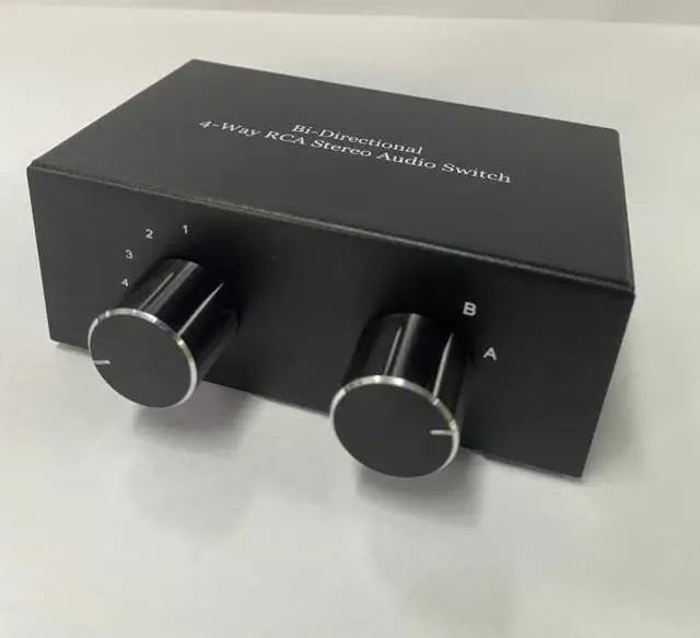 This is a amazing 4-Port Stereo L/R Sound Channel bidirectional switcher for L / R channel audio ports. L / R Audio selector designed for customers having several audio sources and outputs..