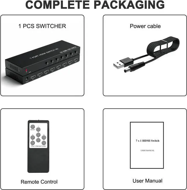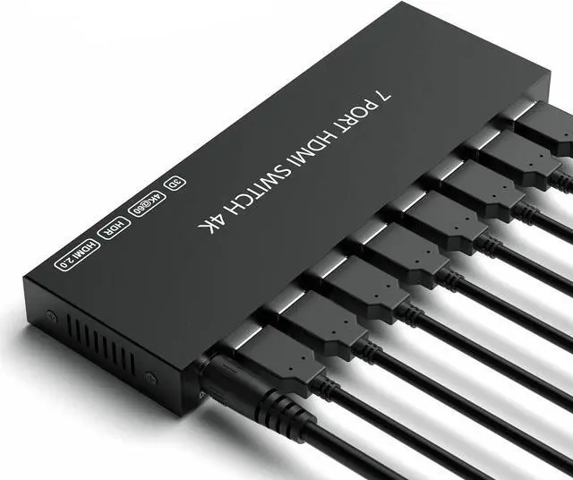 4K HDMI Switch 7x1, 4K@60Hz 7 In 1 Out HDMI Switcher Selector with IR Remote Control, Supports HDMI 2.0 HDCP 2.2 4K@60Hz UltraHD HDR10 3D HD1080P Dolby DST.