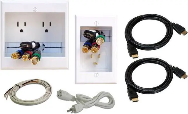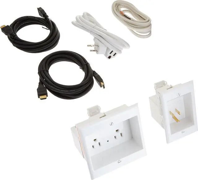 Pro-series powerbridge TWO-PRO recessed in-wall cable management system for wall-mounted flat screen LED, LCD, and Plasma TV's includes two 3-meter length HDMI cables