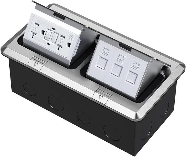 This model features waterproof gasket with IP44 waterproof rating, and corrosive resistant hardware Floor boxes are a great way to modernize your home or business, increase the value, and the functionality.