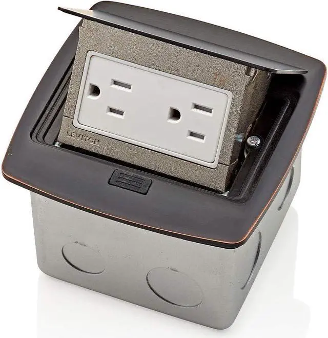 Pop-Up Floor Box with 15 Amp, 125 Volt, NEMA: 5-15R, Pole: 2, 3-Wire, Tamper-Resistant, Decora, Duplex Receptacle/Outlet that is pre-wired to terminal block Bronze