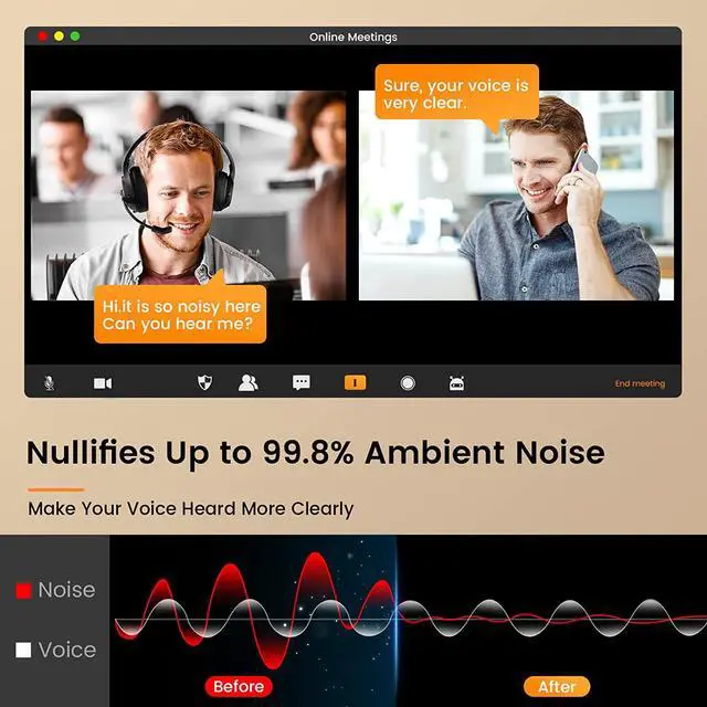 Easy to Use: With a 120° rotatable noise cancelling microphone, you can move it up and down to quickly switch to mute mode. The headphones have volume buttons and a red indicator light so you can adjust the volume during meetings and let others know you're busy to avoid interruptions.
