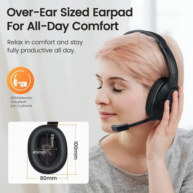 Up to 55H Playtime: Equipped with a 500mAh capacity battery, this wireless bluetooth headset supports up to 55 hours of music playback or 30 hours of non-stop calls. Making it easy to use on the go. When the headset's power is less than 10%, it will remind you to charge it with a voice. Supports quick full charging in 1.5 hours.