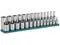 28-piece set includes (14) 1/4 in. drive 12-point deep sockets: 4, 4.5, 5, 5.5, 6, 7, 8, 9, 10, 11, 12, 13, 14, 15 mm, (14) 1/4 in. drive 12-point shallow sockets: 4, 4.5, 5, 5.5, 6, 7, 8, 9, 10, 11, 12, 13, 14, 15 mm. Comes with a billet aluminum socket rail made by Westling Machine in the USA