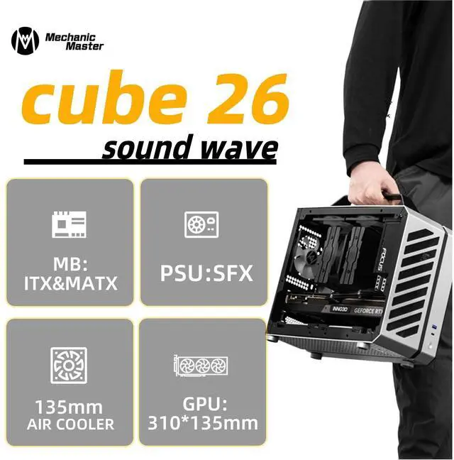 Supports MATX motherboards, SFX PSU, and GPUs up to 310mm (3-slot). Ideal for gaming rigs with RTX 4060Ti/4070 or similar high-performance cards