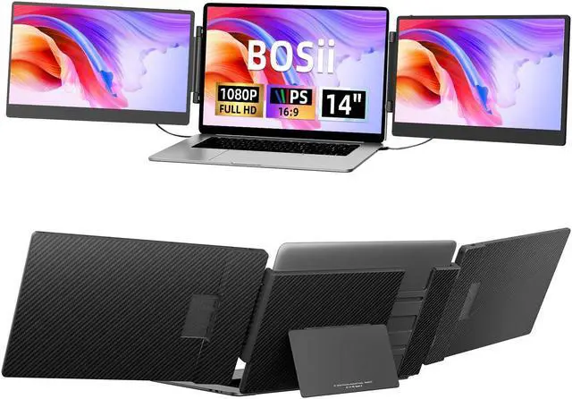 BOSII Laptop Screen Extender Monitor - 14 Inch Dual IPS FHD 1080P HDMI/USB-A/Type-C Extended Portable Monitor for Laptops (Maximum Length: 15.74") Compatible with Windows Mac Travel Work S3
