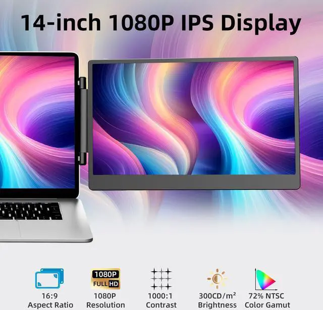 1080P Resolution & 14" IPS FHD ScreenImmerse yourself in the captivating world of our S3 triple laptop monitors, featuring 14-inch 1080P FHD IPS screens. Enjoy a crystal-clear and vibrant workspace with an impressive brightness of 300 nits. This enhances your gaming experience, boosts work performance, and supercharges multitasking capabilities.