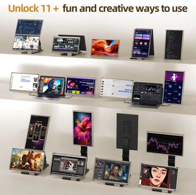 ^^ Lightweight & Portable Design for On-the-Go ProfessionalsWeighing just 2.1 lbs per panel, this portable monitor is designed for mobility. Its compact, foldable design and included carry pouch make it easy to transport, while the magnetic stand ensures quick setup and organization. Perfect for home offices, corporate meetings, and travel. ^^ Hassle-Free Compatibility Check & Dedicated SupportTo ensure compatibility, verify that your device has either a full-featured USB-C port (supports video output) or an HDMI port. If your device has limited ports, additional adapters may be required. Our dedicated support team is available to assist with any compatibility questions, ensuring a smooth and satisfying experience.