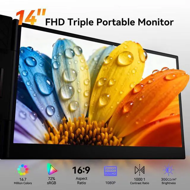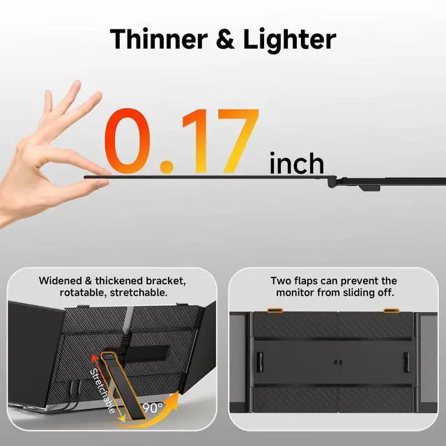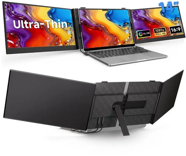 Portable: Crafted for the on-the-go professional, it tips the scales at a mere 2.25 lb and measures an incredibly slim 4.5 mm. this monitor extender is engineered for 13.3 -17" laptops. It's so slim it effortlessly slips into storage bag, unlocking 300% productivity wherever you go. ^^ 14"