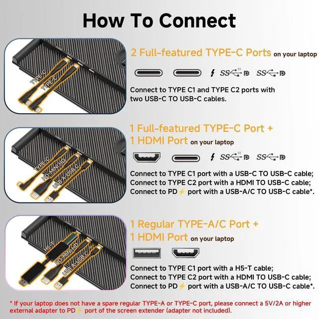 comprehensive connectivity kit includes: 2 full-function USB-C cables, 1 USB-A to C, 1 HDMI to C, and 1 H5-T cable. Enjoy stable, high-speed data transmission - perfect for quick transitions between business presentations and entertainment content.
