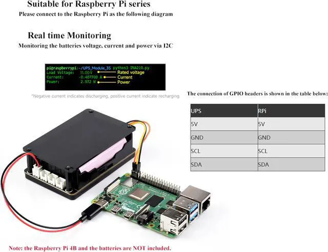 1. UPS Module 3S--3S indicates that powered by 3x 18650 Li batteries in series, the output range is about 9V~ 12.6V