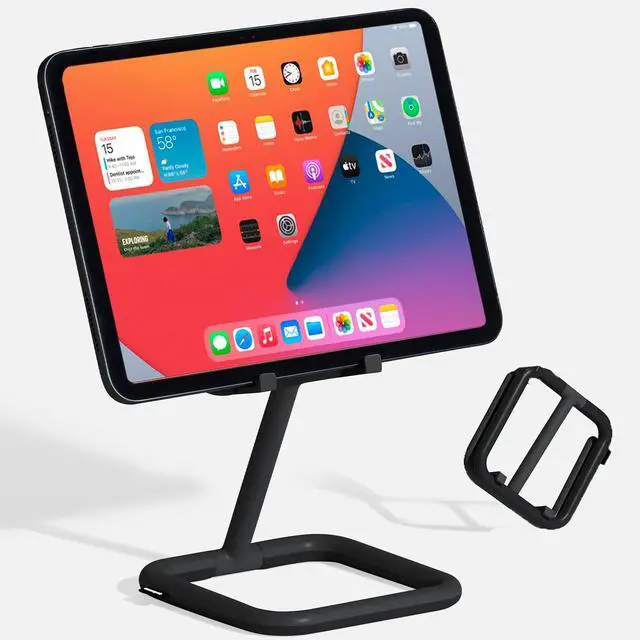 ^^ DESIGN MEETS DURABILITY: Crafted from a premium 50/50 diecast aluminum and rubber construction, the Bouncepad Go stands out for its sleek design and sturdy build. Protect both your tablet and countertop with this durable tablet stand, designed to withstand everyday use.
