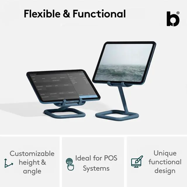 ADJUSTABLE VIEWING ANGLES: Effortlessly customize the height and angle of your tablet with Bouncepad Go iPad holder, ensuring optimal viewing and interaction whether you're using it for a POS system at work, checking in guests at your business kiosk or restaurant reception or relaxing at home.