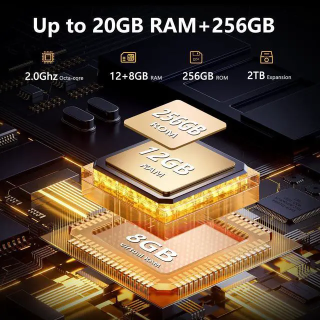 High Capacity Memory 20GB RAM + 256GB ROM + 2TB Expandable + Helio G99 ChipFeaturing 20GB RAM (12GB fixed + 8GB adjustable memory), the rugged tablet combines with the Helio G99 octa-core chip for smooth operation even with multitasking, gaming, and multiple open tabs. The 256GB ROM (expandable up to 2TB with TF card) ensures ample storage space. The FOSSiBOT DT2 tablet runs on the stable Android 13 system, passes GMS certification for privacy protection, and controls access to new applications.
