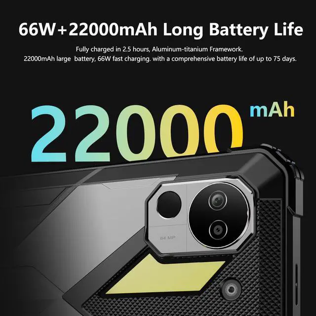 22000mAh Battery 66W Rapid Charging TabletThe FOSSiBOT DT2 Waterproof Tablet is equipped with a massive 22000mAh battery, offering a standby time of up to 75 days. With its 66W fast charging capability, you can fully charge the tablet in just 2.5 hours, eliminating concerns about battery levels. It supports OTG reverse charging, functioning as both a powerful tablet and a power bank. Ideal for entertainment and daily tasks, the high-capacity battery enhances gaming experiences.
