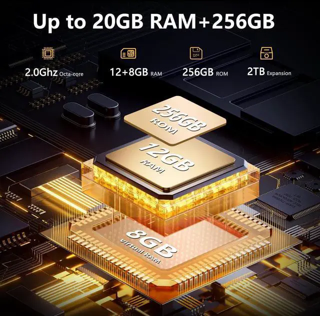 22000mAh Battery 66W Rapid Charging TabletThe FOSSiBOT DT2 Waterproof Tablet is equipped with a massive 22000mAh battery, offering a standby time of up to 75 days. With its 66W fast charging capability, you can fully charge the tablet in just 2.5 hours, eliminating concerns about battery levels. It supports OTG reverse charging, functioning as both a powerful tablet and a power bank. Ideal for entertainment and daily tasks, the high-capacity battery enhances gaming experiences. ^^ High Capacity Memory 20GB RAM + 256GB ROM + 2TB Expandable + Helio G99 ChipFeaturing 20GB RAM (12GB fixed + 8GB adjustable memory), the rugged tablet combines with the Helio G99 octa-core chip for smooth operation even with multitasking, gaming, and multiple open tabs.