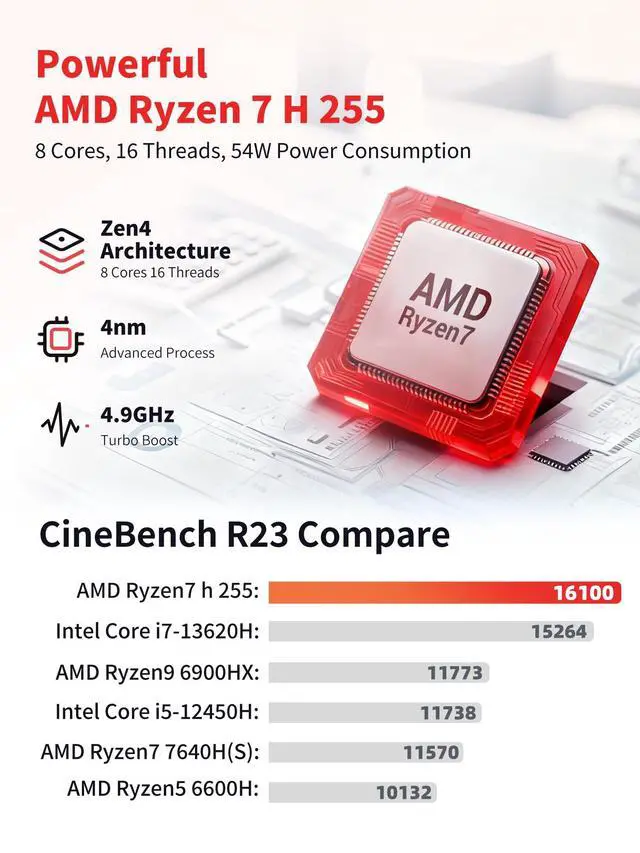 Whether youre hosting a Zoom call or downloading large files, the Realtek RTL8852BE card ensures youre always connected at peak speeds. Equipped with ultra-fast 16GB DDR5 5600MHz RAM (dual interfaces, up to 64GB, 32GBx2) and 512GB M. 2 2280 SSD (dual PCI-E 4.0 x4 interfaces, up to 4TB, 2TBx2), ensures lightning-quick app launches and seamless switching between programs.