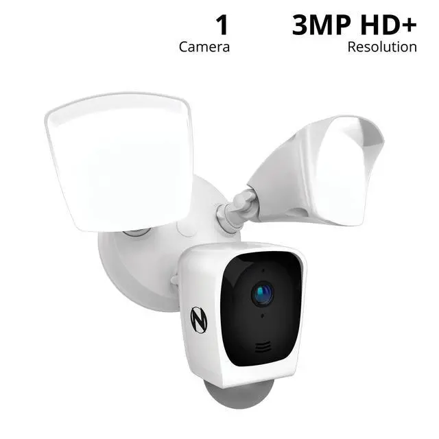 "Illuminate your home security with our U. S. designed and engineered 3MP HD+ Floodlight Deterrence Camera. With 2500 lumens, the motion-activated floodlights turn on when a human or vehicle is detected to provide detailed visibility and deter potential intruders. This advanced detection technology means you'll only be alerted to events that matter, reducing false alarms and ensuring a focused approach to security. With voice alerts, a formidable siren and two-way audio, take command of your surroundings. The camera is wired for power using your new or existing outdoor wiring but wirelessly connects to your router or a compatible Night Owl recorder.