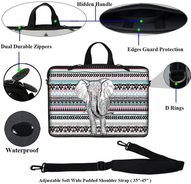 These premium unique designed color matching neoprene sleeve / bags are the ultimate for sophisticated on-the-go users. It protects and stores your Laptop security. Unique image appears on both sides of the neoprene sleeve bag. They are made from durable neoprene that is naturally tear and damage resistant. The interior is also neoprene so it naturally offers a level of non-scratch padding. The reinforced dual zippers will keep your device secure and safe. Slim, lightweight, and portable so it'll fit into your bag, backpack, messenger bag, or use it as a carrying bag by itself.