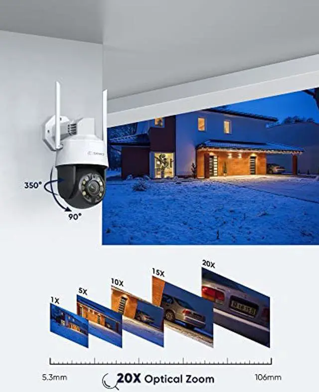 [(20X Optical Zoom & Smart PTZ)] SANNCE outdoor wifi camera has a 20X optical zoom function, allowing you to see fine details such as faces and license plates in the distance. Remotely control 350deg horizontal and 90deg vertical pan and tilt functions from your phone/tablet/PC to view and monitor every corner of your home without blind spots. This is a very professional outdoor dome security camera.