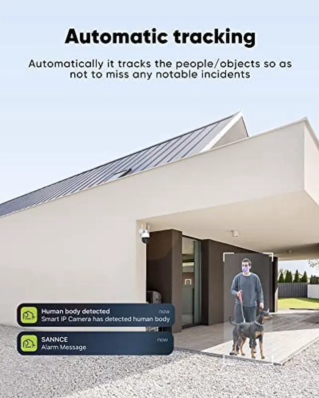 [(AI Detection & Automatic Tracking)] With advanced intelligent motion detection, this IP camera can distinguish between people and objects. You can get more specific notifications and know immediately what triggered the alert. At the same time, it can automatically follow the movement of people/things, giving you more security.