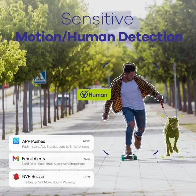 And whenever any motion is detected in your customized motion areas, email alerts with snapshots and APP alarm pushes will be sent to you immediately.