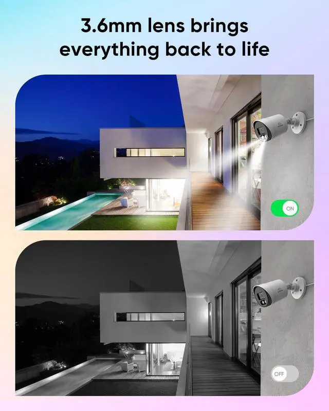 Adjustable Warm Light: Full color distance covers up to 100ft/30m. 3500K warm lights with low power consumption can automatically adjust light intensity according to the environment. ^^ 1080P Full Color Footage with