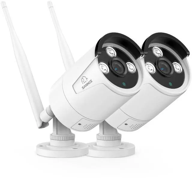 3MP & H. 264+ Wireless Security CameraSANNCE wireless camera delivers 3MP Super HD clarity using H. 264+ compression. Equipped with 4 dual light array lights, the camera provides color video even after sunset. ^^ 2-Way Audio Wireless Camera SystemBuilt-in microphone & speaker in this SANNCE camera enable real-time wireless communication, perfect for remotely interacting with visitors or pets via mobile app. ^^ SANNCE Dual-Band Wireless Camera ( 2.4G / 5.8G )Switch between 5.8G band for 8MP streaming or 2.4G for extended coverage. AP mode ensures local access without internet - ideal for garage/barn surveillance.