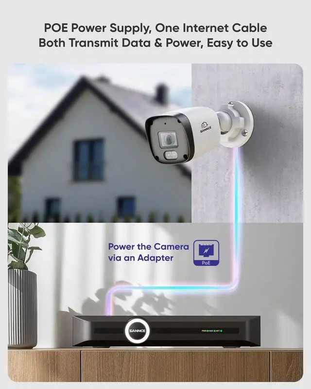 Furthermore, set up custom privacy masks to block out sensitive areas from view, allowing you to safeguard your privacy without compromising overall surveillance coverage. ^^ IP67 Weatherproof & Wide Temperature ToleranceThe PoE security camera features a durable plastic housing that operates reliably in temperatures from -22F to 140F (-30C to 60C) and carries an IP67 rating for complete dust and water resistance. Its built-in microphone is engineered to capture clear ambient sound, even during heavy rain and snow. ^^ PoE Power & S+265 EncodingIEEE 802.3 af/at compliant with 30W max power via Ethernet.