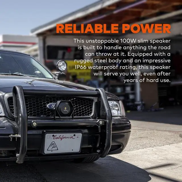 ADAPTABLE - Power where you need it. At only 2" deep and 6" wide, this compact speaker is the perfect choice for vehicles of all sizes, including trucks, SUVs, sedans, compacts, motorcycles, ATVs, and UTVs.