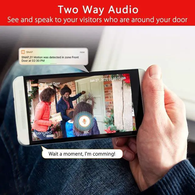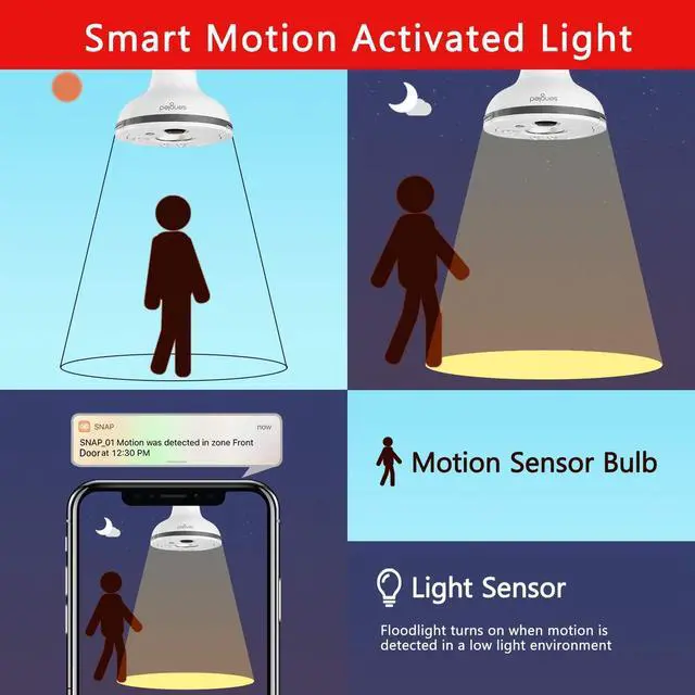 ULTRA-BRIGHT LED FLOODLIGHTS-The outdoor security camera is equipped with ultra-bright LED light. You can schedule light status via Sengled Snap APP or It turns on automatically when detect a motion. Max 1080P HD resolution (1920x1080) and 140field of view can capture wide color vision clearly. ^^ TWO-WAY TALK-Sengled floodlight security camera built in speaker and microphone, you can hear and speak to people on your property from your mobile device directly even when you are far away from home. ^^ SMART MOTION SENSOR-Built in motion sensor, the camera can capture every motion activities clearly.