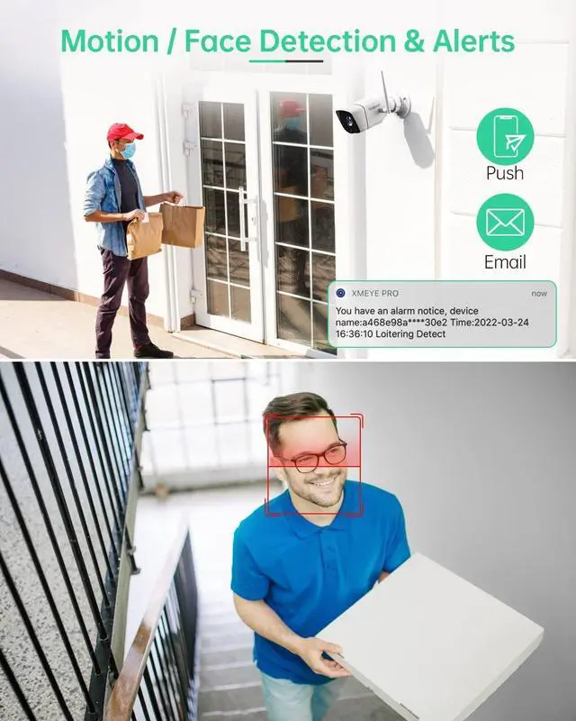 Upgraded Face & Motion Detection: This newest 5MP wireless cameras system is equipped with upgraded human face detection. If motion detection triggers some wrong alarm, you may turn on the face detection and get more accurate alarms. No more worries about wrong message! ^^ Complimentary APP for