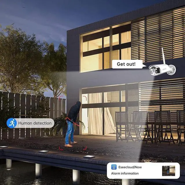 Advanced H265+ system: Play and Play, no complexed match up or wiring trouble, plug the adapter for cameras and NVR, it will auto shown images on the screen that connect to the NVR (no display comes with it). H. 265+ system is faster and save more videos than H. 264 system with same hard drive, great using experience. ^^ Human detection /Motion detection Alarm &